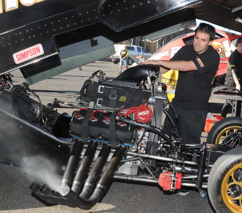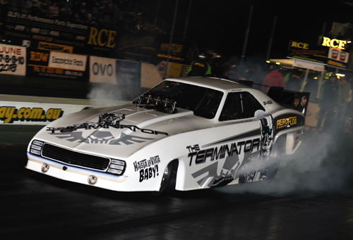 Nostalgia Nitro – From Down Under!  During our recent trip to Australia — we did have the privilege of attending our first Aeroflow Outlaw Nitro Funny Car event – at premium facility Willowbank Raceway (located just west of Brisbane). During our recent trip to Australia — we did have the privilege of attending our first Aeroflow Outlaw Nitro Funny Car event – at premium facility Willowbank Raceway (located just west of Brisbane).We were very impressed by the people, the professionalism and the quality of racing which this independent Australian touring series produces. We are going to do a separate post (coming soon) with more information on the series and that will include some details on a world record fast run we witnessed during our evening out with them. But for now please check out some photo imagery from their Willowbank feature race (below). (Editor’s Note : If you are a true drag racing fan and you plan to visit Australia at some point – we highly recommend you coincide your trip with this series’ racing schedule (you won’t be disappointed!) For more info visit: www.outlawnitrofunnycars.com.au )  Jason Donnelly’s multi car DBS Racing Team includes two cars within the Outlaw FC series – driving is done by his sons Dan and Jake.  New Zealand’s Morice McMillin plays many important roles for the circuit – in addition to being the Series Manager, and expert race car tuner, he also wheels the super popular “One Bad Kiwi” Firebird.  On the evening we attended — we witnessed Rick Gauci run a world record quick ET of 5.37 secs at 271+ mph in the superbly prepped “Nitro Express” ’57 Chevy. (More details on that coming soon to NitroFCCanada.com!)  Shane Olive drove the “Lets Boogie” Ford Mustang at Willowbank – just one of many of the circuit cars that are owned by series founder Graeme Cowin.  The Aeroflow Outlaw Funny Car Series does a truly great job with fan marketing and individual racer self promotion.  John Leahy’s “The Bandit” Firebird (from New Zealand) is one of the series’ most potent race cars overall.  The very famous “LA Hooker” FC name continues on in Australia! -The legendary Arrow driver is versatile Australian racer Anthony Begley.  This series features some very cool efficiencies — with race car haulers collectively housing and transporting multiple race cars between some of the vast distances travelled within the continent. To view more Funny Car images from our Willowbank – check out ou photo gallery posted on our co-production site: HERE Post and photos by : Bruce Biegler