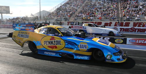 “We had a couple of good breaks with three of the top-five contenders dropped out in the first round but to be in this position (to be battling for a championship with one event remaining) is great,” said Pedregon who moves into third place behind the Dodge Charger SRT Hellcat Funny Cars of Capps and Hagan. “Coming into the race I think (our championship chances) were pretty dim because I just didn’t feel like the breaks were coming our way. We were just losing some close races. And I thought, ‘Man, well, if we could just finish in the top five, I felt that was good. But after winning today, yeah, hey, we’re, back in it.”