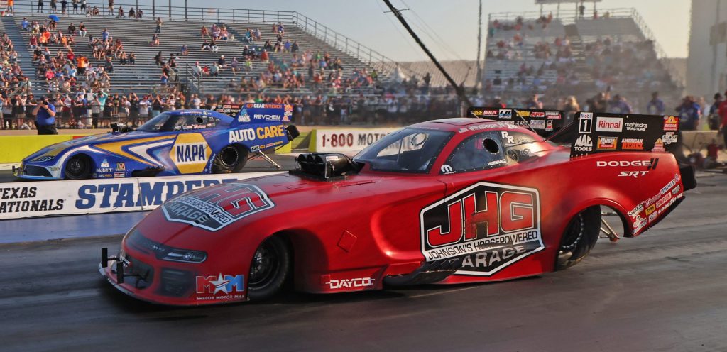 “This win was really special,” said Hagan. “We’re always building great relationships with our partners, and we have really great partners with Dodge//SRT in our Hellcat Funny Car. I’ve been with them almost 15 years and won four championships with them. We had JHG on the car and had Andy Ross from American Rebel at the race.