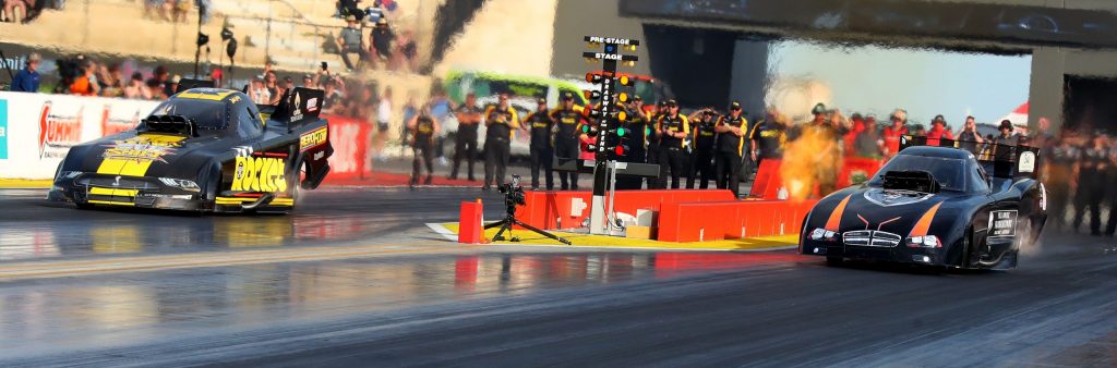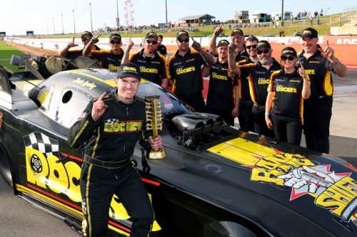 XPRO Opener Oct 20, 2024 // Australian FC // editorAustralia’s NDRC hosted it’s 2024-25 season opening event a fabulous facility Dragway at the Bend (located in Victoria state). The event did include the first round for the XPRO Nitro Funny Car division and it was 3rd generation racer Josh Leahy who showed talent and control well beyond his time in the bracket, with the newcomer blazing through for a well-deserved victory and a new PB while he was at it over Murrihy. It had been a remarkable turnaround for Murrihy to make it to the A-Final against Leahy following a difficult qualifying and round one, but his round two 4.090/488.59kph effort had signalled a return to form allowing him to make the A-Final, where he ran a 5.405/222.89kph early-off pass to Leahy’s winning 4.069/489.23kph performance, which followed the Rocket Industries’ racers earlier strong 4.134/418.95kph and near-PB 4.070/467.71kph performances in rounds one and two.  Josh Leahy drew the first event win of the season for the NDRC’s XPRO Nitro Funny Car division – when he defeated Adam Murrihy in the final round. McMillian and Walshe meanwhile had each had their fair share of trouble over the day, with Walshe splitting the dry sump for a large oil leak to miss round one before enjoying a redeeming 4.177/423.71kph effort on a round two loss, while McMillin had the chutes come out early in both rounds one and two today, remarkably still running four second passes (4.302 and 4.261) despite the drag. In the B-Final, it was Walshe who took home the chocolates in a blazing side by side pass against McMillin, with the Queenslander’s 4.072/512.63kph effort bettering McMillin’s 4.166/391.94kph run with his chutes once again out early. “That is a PB and this Rocket Industries Nitro Funny Car is just on rails!” Leahy grinned. “I just can’t thank Graeme Cowin, Wendy Cowin and Morice enough for giving me this opportunity, it is just unreal to even think I am here doing this today! “We couldn’t do it without all our partners, they are what supports us, and this whole team is just amazing – the whole Aeroflow workshop busts their butts to get us out here and I can’t thank them enough. It is a real team effort; it is not down to an individual or a couple of individuals, it is the whole Aeroflow and Rocket and Harts team.” For the XPRO Nitro Funny Car division it was Morice McMillin leading the way after running a 4.027/476.26kph effort in Q1 which put him to the top of the sheets and held up for low ET of the event. Posted by Jigsaw Communications Photos by Grant Stephens (Cackling Pipes)
