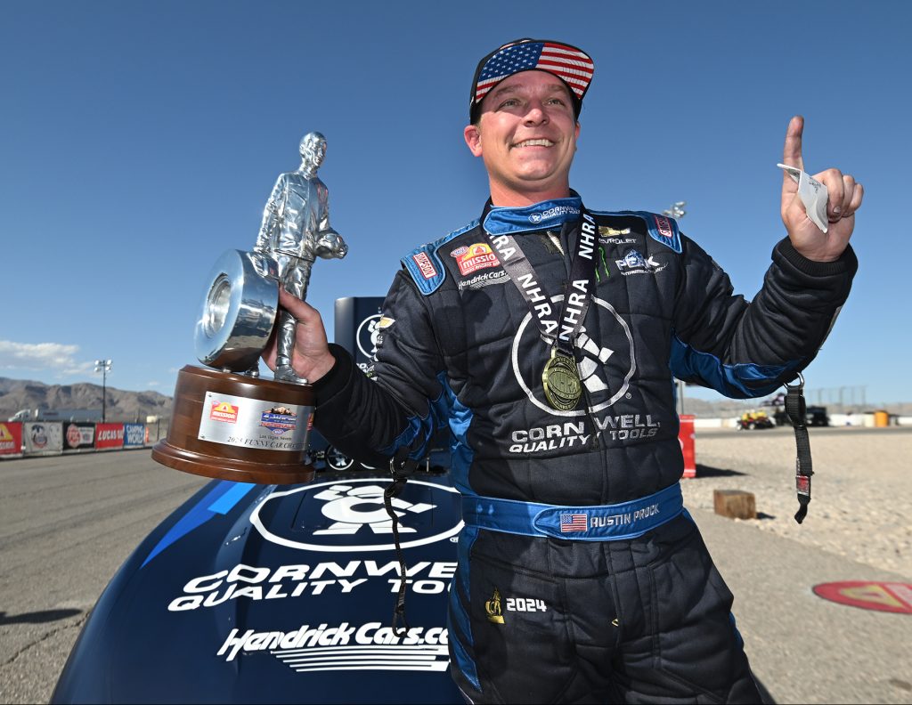 A Return to Championship Form Apr 16, 2025 // NHRA Event FC Results // editorNHRA’s defending Funny Car world champ Austin Prock returned to championship form in Las Vegas, picking up his first win of the season with a run of 4.009 at 316.01 in his Cornwell Tools Chevrolet SS to hold off a quad that featured runner-up Paul Lee, Matt Hagan and Dave Richards. Prock dominated at Las Vegas in the fall of 2024 to all but clinch his first world championship, but the team made major changes on the car in the off-season. It was a struggle to open the year, falling in the opening round in Gainesville, but the team has slowly gained momentum and it was capped off by a sterling performance in Vegas. He made the quickest run in eliminations, going 3.964 at 322.88 in an impressive semifinal victory and then finished it off with another terrific run in the championship round.  Austin Prock – NHRA’s defending World Champion – notched his first win of the season at Las Vegas last weekend. “We haven’t had the success that we had last year, but we’re still the same team,” Prock said. “We always expect to show up and win. We want to go set low E.T. every round, and we want to win every race, so when we’re not doing that, it’s hard to keep your head up when things aren’t going right, especially when your expectations are so high. So, for all of us to come together is great.