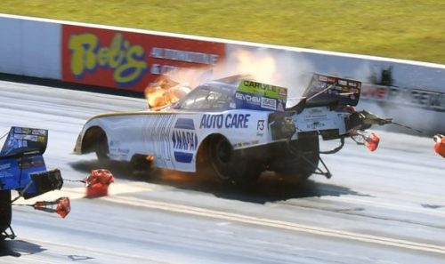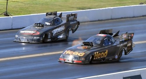 Entries – 18 cars FC class racing at Maple Grove was rather torrid – with both Ron Capps and Matt Hagan having some expensive moments. Posted with files by NHRA Communications & Bruce Biegler