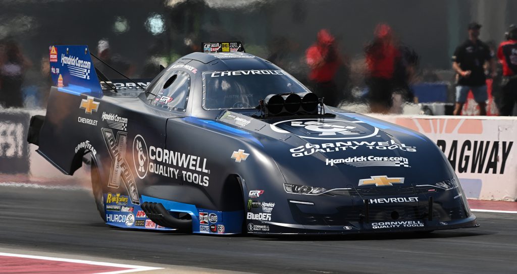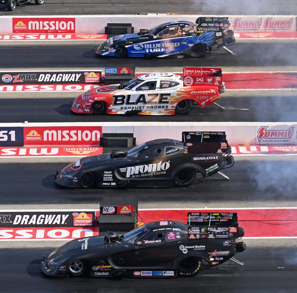 Prock went 3.912-seconds at 332.43 mph in his JFR/Cornwell Quality Tools Chevrolet SS in the championship quad, powering to his eighth victory of the season and 20th in his career. The victory, Prock’s 16th since moving to Funny Car last year, also gave the reigning world champ a season sweep at all three four-wide races in 2025.