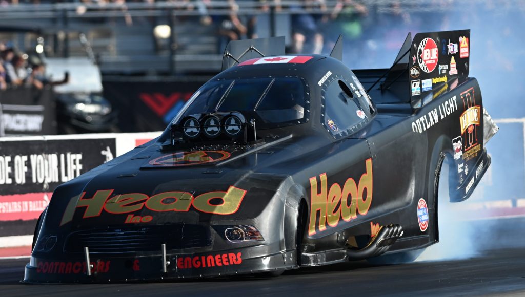 Countdown Continuance Sep 29, 2025 // Funny Car News Hotzone // editorIn the third race of the 2025 NHRA Mission Foods Drag Racing Series Countdown, Spencer Hyde, driver for Head Racing and the leading candidate for Rookie of the Year, continued his fight to move up in the point standings. Hyde entered race day of the NAPA Auto Parts NHRA Midwest Nationals at World Wide Technology Raceway in the No. 8 qualifying position, up against driver Jack Beckman. “We had to really dig deep this weekend,” said Hyde. “It’s our playoffs and everyone is out here battling. This team worked really hard all through qualifying and we felt good going into the first round. We made runs in cool weather on Friday night and in the heat yesterday.” Hyde’s best pass of the weekend came on Friday night, when he was competing for the “Top Hitter” bat. His 3.903 second, 325.61 mph run was enough to slot him into the No. 8 qualifying position on Sunday. He was up against No. 9 qualifier Jack Beckman. This was their third time this year meeting in eliminations, with Hyde coming out ahead in the previous two. “We knew the track would be a bit tricky, but we felt like we had a pretty good chance against Jack,” said Hyde. “I like that I’m finally getting to a point where I’m racing guys more than once, because I can get into a good groove for what it’s like to line up against them.” In the first round, Hyde was off the starting line first, but Beckman was able to get past him by the time they both reached the finish line. Beckman then went on to race to the final round falling to eventual winner Matt Hagan. Hyde’s performance was enough to keep him competitively in the mix for the Championship at No. 8 in points. There are three races left in the Countdown, with the next race being the legendary Texas NHRA Fall Nationals as part of the Stampede of Speed. “I am coming to the end of my rookie season, and I feel very comfortable in this Head Inc. and Hyde Construction Funny Car,” said Hyde. “I had a decent light in that round and I was first off the line by a little. I know I need to get a little better and be consistent. We have three more races to get our first win. I’m looking forward to Dallas because my entire family will be there, and it’s the home race for my fiancĂ©, Courtney. I know this team has all the pieces and we just need to put them all together on race day.” Hyde and the Head Racing team will be back in competition in two weeks at the Stampede of Speed and Texas NHRA Fall Nationals on October 8-12 at Texas Motorplex. Posted by Elon Werner Photo courtesy of NHRA