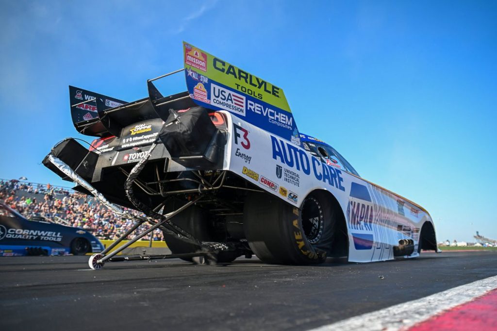 Another Juggernaut Win! Oct 14, 2025 // NHRA Event FC Results // editorNHRA Funny Car points leader Austin Prock continues his season dominance — rolling his ninth win of 2025 at Texas Motorplex’s 40th annual Texas NHRA FallNationals. Prock went 3.959-seconds at 328.30 mph in his JFR/Cornwell Tools Chevrolet SS, powering past Ron Capps who ran 4.405 at 199.80 mph. The event victory moved Prock another step closer to his second straight world championship. It was Prock’s 21st win in his career, as well as his first career victory at the famed Texas Motorplex. Prock, who qualified No. 1, (@ 3.687 secs Low ET) defeated Blake Alexander, Spencer Hyde and Chad Green to reach the final before putting together a dominant performance in the final round. After starting the weekend just 20 points ahead of Matt Hagan, who fell in the first round, Prock had a remarkable answer in Dallas, making the quickest run in every round of eliminations and the last three rounds of qualifying. His points lead now stands at 112 points over Hagan with two races remaining.