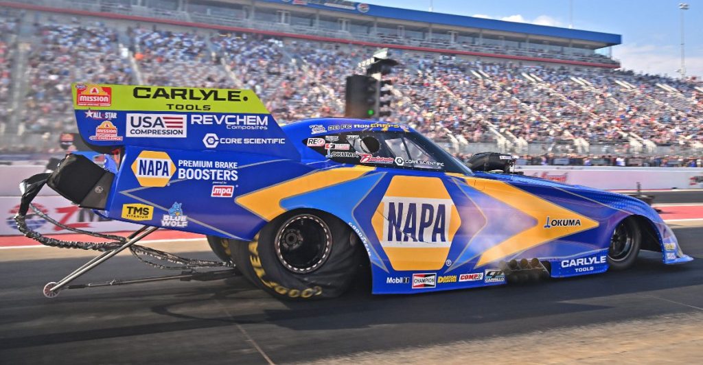Driving his NAPA Auto Care Funny Car at the fourth of 20 races this season, Capps qualified No. 1 and carried that momentum through eliminations. He defeated fellow past world champions Jack Beckman, Matt Hagan, and J.R. Todd in the final quad to score his 79th career victory, extending his points lead in the process.