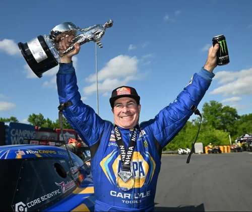“Red Hot Ron” Apr 27, 2026 // NHRA Event FC Results // editorRon Capps’ red-hot start to the 2026 NHRA Mission Foods Drag Racing Series season rolled on at the NHRA 4-Wide Nationals at zMAX Dragway as the 3X world champion secured his second win of the year in his third consecutive final round.